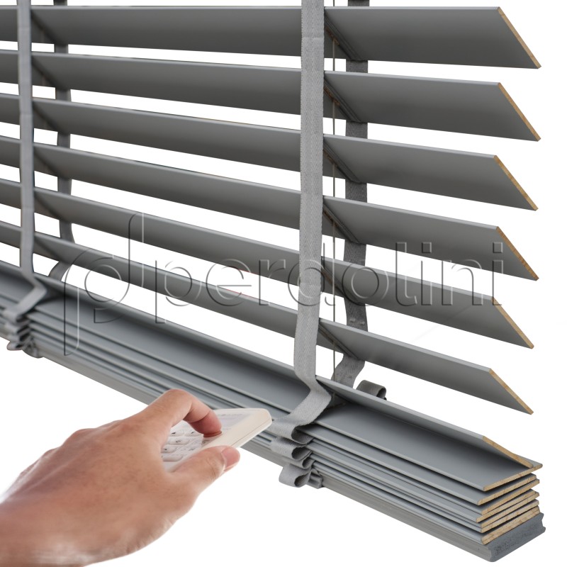 Motorlu Gerçek Ahşap Jaluzi - Gri MK-MJ504