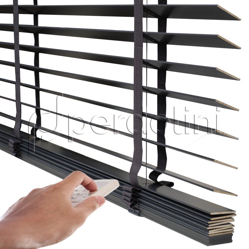 Motorlu Gerçek Ahşap Jaluzi - Siyah MK-MJ506