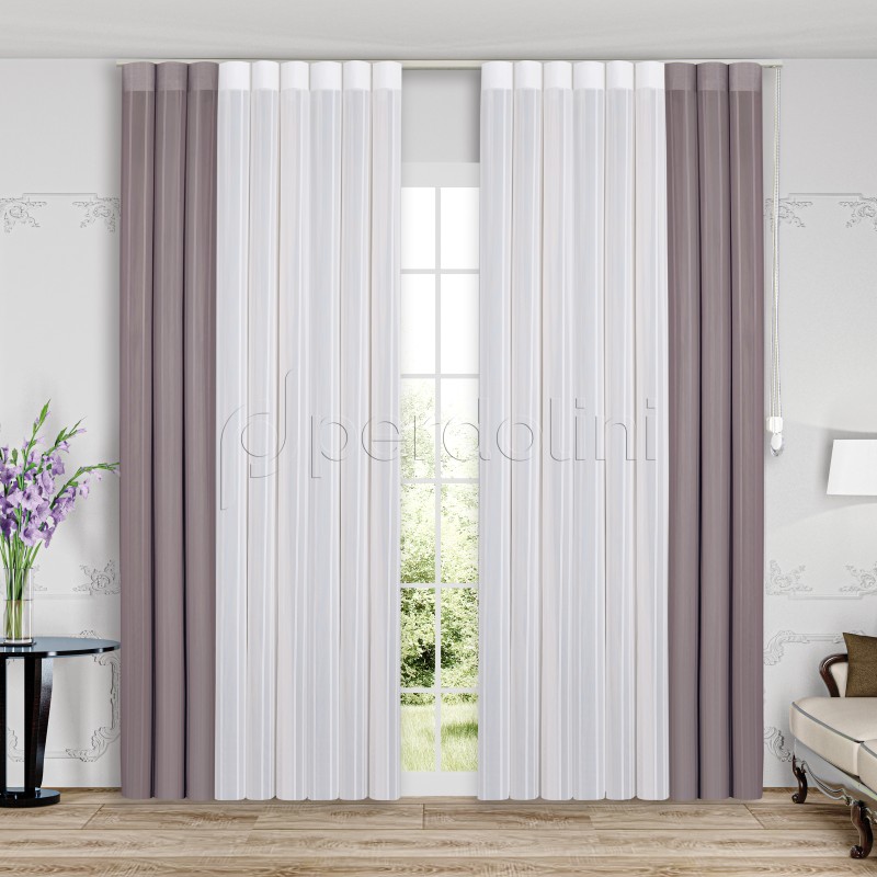 Akıllı Dikey Tül Perde - Puce Hafif Mor - Beyaz | SH
