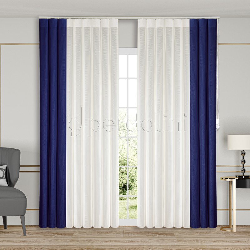 Akıllı Dikey Tül Perde - Lacivert - Ekru | SM